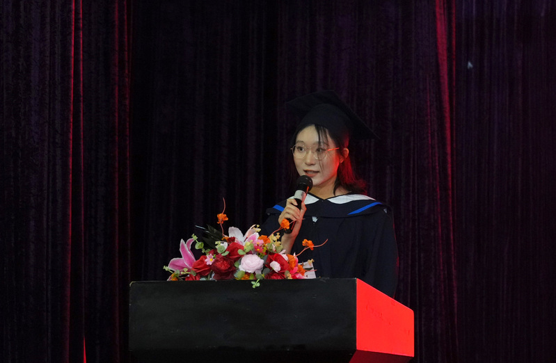 23級五年一貫制學(xué)前教育2班的湯佳同學(xué)代表全體畢業(yè)生,表達(dá)了對母校、師長和一路相伴的家人、朋友的感謝!她說,在學(xué)校和老師的培養(yǎng)下,自己不僅在學(xué)業(yè)上收獲頗豐,更是一步步走向更大的舞臺。過去無數(shù)個為達(dá)成目標(biāo)而咬牙堅(jiān)持、刻苦努力的稚嫩身影,匯集成如今已經(jīng)實(shí)現(xiàn)目標(biāo)、逐漸成熟的自己。如今的成就離不開自身的努力,更離不開學(xué)校搭建的平臺,離不開領(lǐng)導(dǎo)和老師們的指導(dǎo)栽培。