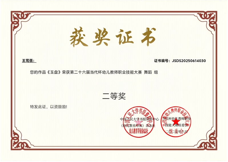 近日,第二十六屆“當(dāng)代杯”全國幼師技能大賽圓滿落幕。我校學(xué)子在多項(xiàng)賽事中脫穎而出,榮獲44項(xiàng)獎(jiǎng)項(xiàng),其中,一等獎(jiǎng)9項(xiàng),二等獎(jiǎng)18項(xiàng),三等獎(jiǎng)16項(xiàng),優(yōu)秀獎(jiǎng)1項(xiàng)。謝美玲、左斌營等老師獲“優(yōu)秀指導(dǎo)教師”獎(jiǎng)。上海震旦職業(yè)學(xué)院被評(píng)為“教育教學(xué)成果展示模范?!?。