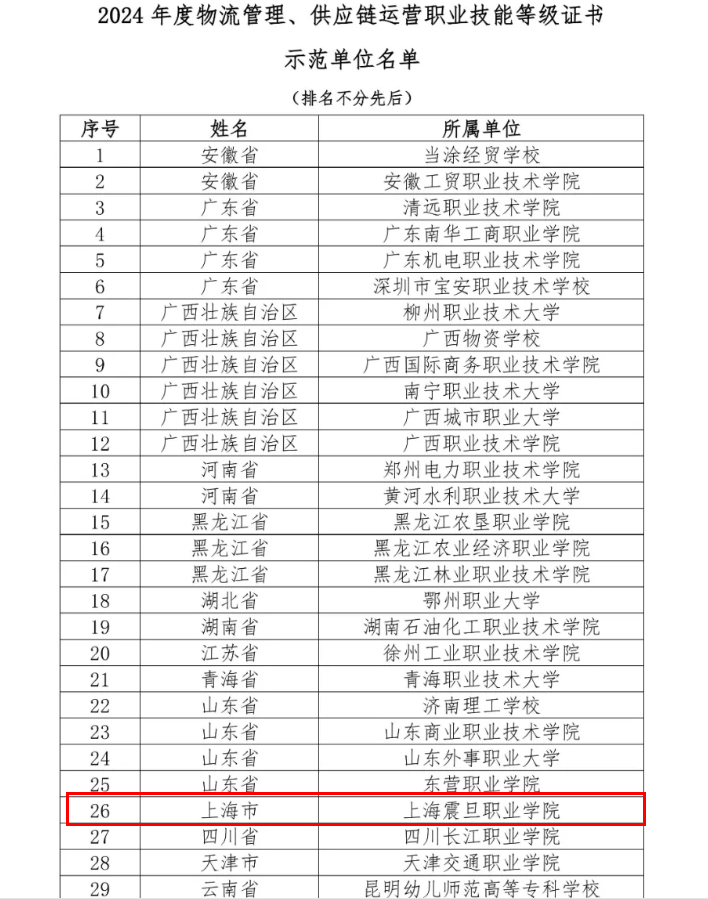 近日,北京中物聯(lián)物流采購(gòu)培訓(xùn)中心公布了2024年度物流管理職業(yè)技能等級(jí)證書(shū)先進(jìn)單位名單,我校榮獲2024年度物流管理職業(yè)技能等級(jí)證書(shū)“示范單位”。