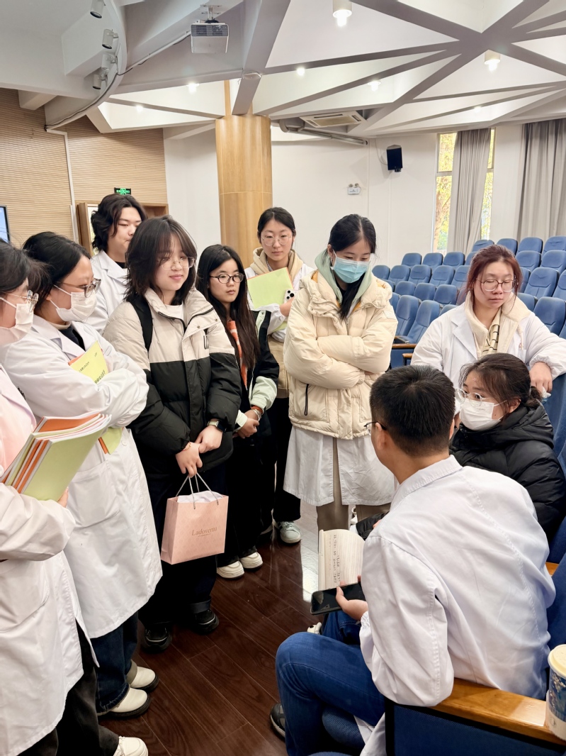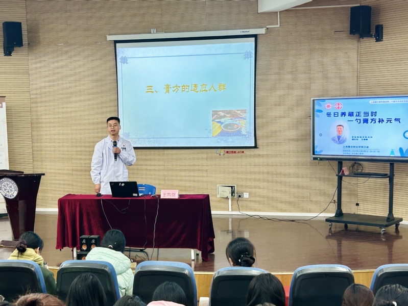 王高強(qiáng)副主任深耕中醫(yī)內(nèi)科臨床工作多年,在膏方調(diào)理與養(yǎng)生保健領(lǐng)域有著豐富的理論積淀和實(shí)踐經(jīng)驗。講座中,他結(jié)合中醫(yī)“天人相應(yīng)”和“冬藏”理論,從膏方的歷史淵源、組方原則、炮制工藝等核心內(nèi)容切入,系統(tǒng)講解了膏方在冬日養(yǎng)生中的獨(dú)特優(yōu)勢。講座內(nèi)容兼具理論深度與實(shí)踐價值,學(xué)生們專注聆聽、認(rèn)真記錄,并就膏方制備流程、藥材炮制要點(diǎn)等專業(yè)問題與王主任探討交流。