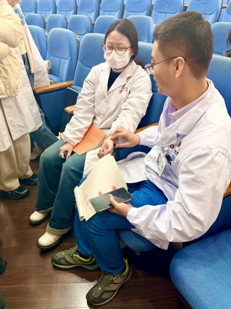 在互動環(huán)節(jié),王主任結(jié)合冬季常見亞健康問題,為學(xué)生們普及了個性化膏方調(diào)理的注意事項,內(nèi)容貼近生活、實(shí)用性強(qiáng)。講座結(jié)束后,王主任特意為有需求的學(xué)生提供免費(fèi)把脈咨詢服務(wù),通過“望聞問切”精準(zhǔn)診斷,并結(jié)合學(xué)生的體質(zhì)特點(diǎn)給出個性化養(yǎng)生建議與簡易膏方配方,讓學(xué)生們親身感受中醫(yī)診療的獨(dú)特魅力。